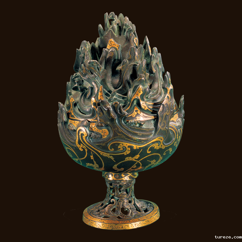 这种代表汉代风尚的特殊制式自西汉中期出现,之所以被称之为博山炉,是因其仿照传说中的海上仙山“博山”而制成。博山炉的出现,也反映出汉代的神明崇拜文化。