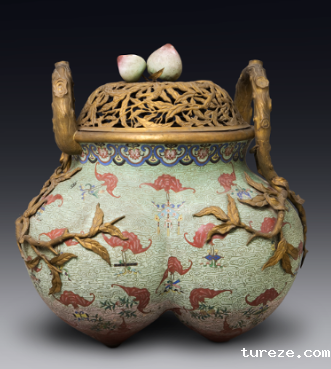 清 掐丝珐琅云蝠纹桃式熏炉 故宫博物院藏