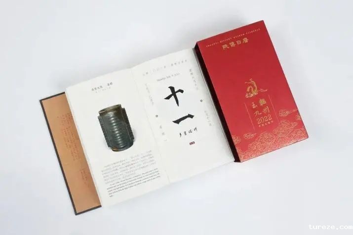 “玉韫九州”,韫是包含、蕴藏之意,九州是中国的代名词。“石韫玉而山辉,水怀珠而川媚”,日历以“玉韫九州”为题,意指九州处处蕴藏美玉,使得中华大地山辉水润;华夏民族爱玉崇玉,助推中华文明玉汝于成。