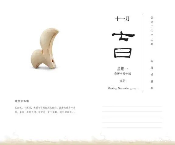 看惯了大气的红色,再来看看配色清淡古朴的《2022陕博日历·玉韫九州》。