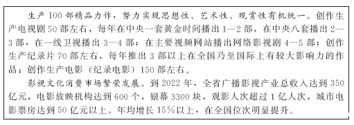到2022年,全省影视全产业链进一步形成,影视制作工业化、信息化水平大幅提升,可持续发展能力进一步增强,影视创作生产在全国处于领先水平。