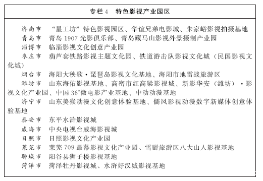 建设特色影视园区。坚持统筹规划,优化园区结构,坚决防止无序竞争,实现错位发展、协同互补。突出特色,充分发挥我省历史资源丰富、文化底蕴厚重优势,依托各地历史、自然、文化、名人等优势,围绕红色文化、儒家文化、泰山文化、齐文化、运河文化、水浒文化、海洋文化、乡村文化等文化主题,吸引影视剧拍摄生产,把影视产业园区和休闲度假、旅游开发、情景体验等业态相结合,不断拉长影视产业链。拓展园区功能,培育形成集影视拍摄、创意设计、教育培训、文博会展、艺术交流、众创空间以及商业配套、生活服务为一体的多功能园区。省级及以上经济开发区、高新技术开发区和综合保税区等各类园区支持影视文化新兴业态企业入区发展,设立影视文化新兴业态产业片区。各级政府和产业园区(开发区)管理机构制定优惠政策吸引新兴业态企业和产业项目入驻。
