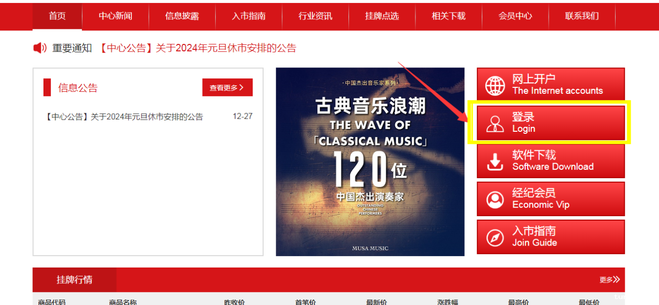 原音创宝老用户(有持仓或有资金余额)在登录[中国(青岛)音乐版权交易平台]官网时,可使用默认登录密码直接登录,具体操作步骤情况如下:
