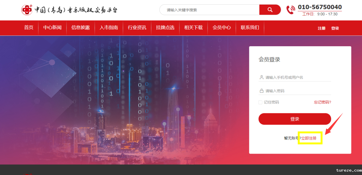 1、登录[中国(青岛)音乐版权交易平台]官网