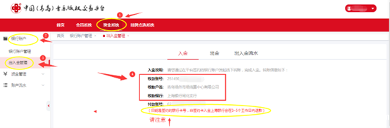 请注意:请在周一至周五(节假日除外)9:00-16:00进行操作,否则可能导致入金失败。