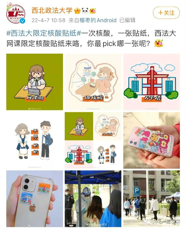 前段时间,西安高校频上热搜,#西安高校的核酸贴纸哪家强# #陕科大黑天鹅贴纸上线#,最初开始是西安交通大学及咸阳师范学院等高校推出核酸限定贴纸,不少网友表示“慕了”,便也纷纷@自家学校,于是便开启了一场创意核酸贴纸设计的浪潮。
